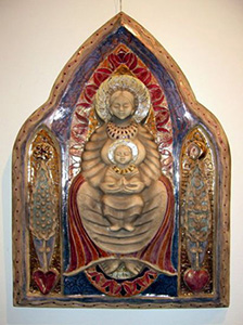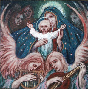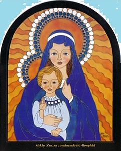 Babba Máriát ábrázolja, aki a Holdon áll, feje körül pedig a 12 nyolcágú