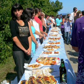 Másnap a jelentős számú utas mozgatása csak több busszal és különböző idő- és helyszínbeosztással volt lehetséges. Ennek során bizonyságot nyert, hogy a Tisza magyarországi túlpartján lévő, történelmi múltú Tarpa, Szatmárcseke, a kazettás mennyezetű református templomairól híres Tákos, Csaroda községekkel szoros kapcsolatban álló, egységes tájegységről beszélhetünk. A Mezőgecsén elszállásoltakat maga a polgármester, Erős Márton kalauzolta idegenvezetőként, mesélt böllér- és lekvárfőző versenyükről, mutatta be az Ukrajnához tartozó kistelepülések látnivalóit, többek között Tiszacsomán a honfoglalás kori temetőt. Badalón Petőfi emléktáblája emlékeztetett, hogy a költő itt írta 1847-ben a Tiszánál című versét. Mezőváriban zajlott a Rákóczi szabadságharc kezdetének második, Beregszászon harmadik zászlóbontása. Csetfalván a fazsindelyes harangtoronnyal épített, kazettás mennyezetű református, majd szomszédságában a 2000-ben Makovecz stílusban épített és két felekezet által használt katolikus-görögkatolikus templomot lehetet megcsodálni. Az sem mindennapos, hogy ez utóbbi történetét magyarul tökéletesen beszélő ukrán asszony mesélje el mondandóját Wass Albert idézettel fűszerezve. Búcsúzóul még arra is megkérte a jelenlévőket, hogy énekeljék vele a Boldogasszony anyánk című ősi himnuszunkat. A délután első fele Beregszász nevezetességeinek megismerésével telt, majd az igazi megpróbáltatást a már használaton kívül lévő nagyberegi vonalra beállított kisvasút jelentette. A viszonyokra jellemző, hogy a tizenegy kilométeres távot több mint negyven perc alatt tette meg a nyithatatlan ablakú, fülledt levegőjű, lepusztult vagonokból álló szerelvény. Az embert próbáló körülményeket érkezéskor a szőttes fesztivál vásári hangulata feledtette.