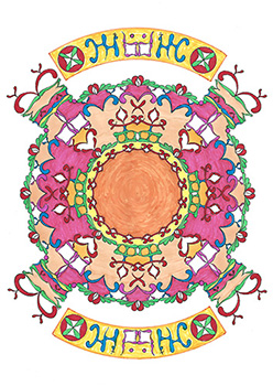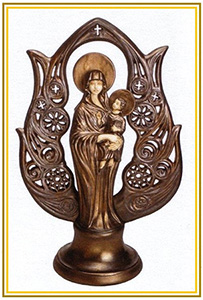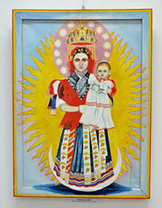 Babba Máriát ábrázolja, aki a Holdon áll, feje körül pedig a 12 nyolcágú