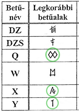 rovásemlékeinkben nem fordulnak elő. Ezek a Q, X, Y és a W.